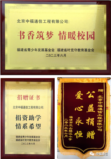 北京中福通信工程有限公司積極響應國家“關心下一代健康成長”的倡導,持續開展“捐書助學 愛心筑夢”活動。今年,通過福建省慈善總會向福清市三山瑟江小學捐獻2萬元購書款,讓莘莘學子感受黨的關懷和社會主義大家庭的溫暖。